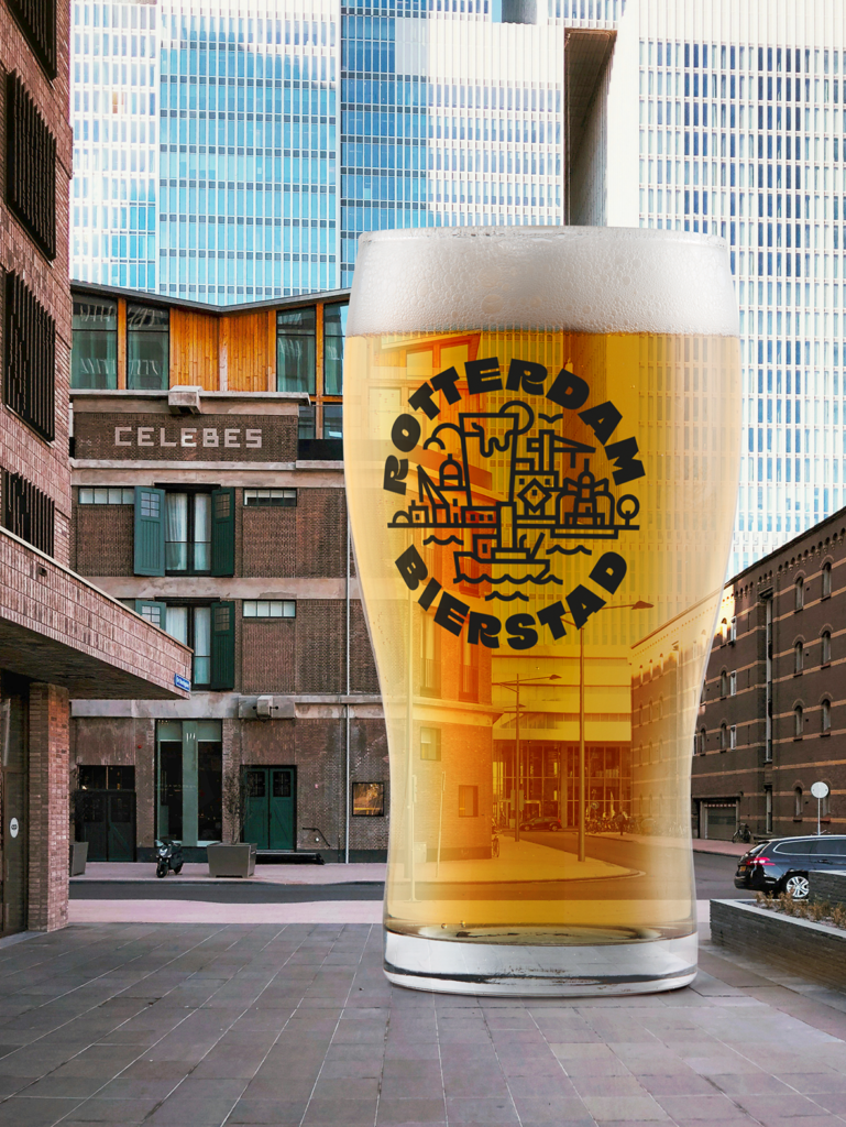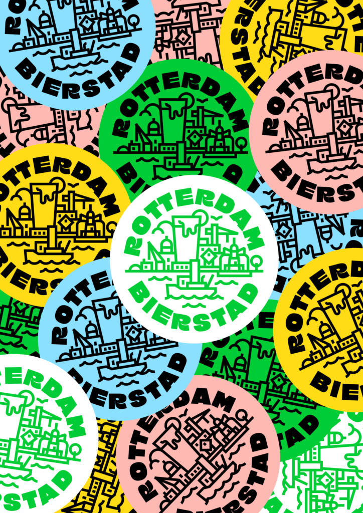 Identity voor Rotterdam Bierstad, een samenwerkingsverband tussen BrewDog Rotterdam, Brouwerij De Gele Kanarie, Brouwerij Noordt, Apenrots Brouwerij, Hofbrouwerij Reijngoud, Hoevebrugsch, Jelster, Kaapse Brouwers, Monarch Brewery, Stadsbrouwerij De Pelgrim Rotterdam, ROTT. Brouwers, Stadshaven Brouwerij, Trots Rotterdams Bier en VET & LAZY. En ja dat zijn er een hoop en dus staat de studio hier tot aan het plafond vol met proefpaketten ^_^